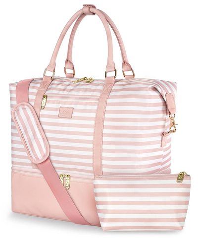 תיק סוף שבוע עם תא נעליים תיקי לילה ורודים לנשים נסיעות תיק נשיאה גדול פסים